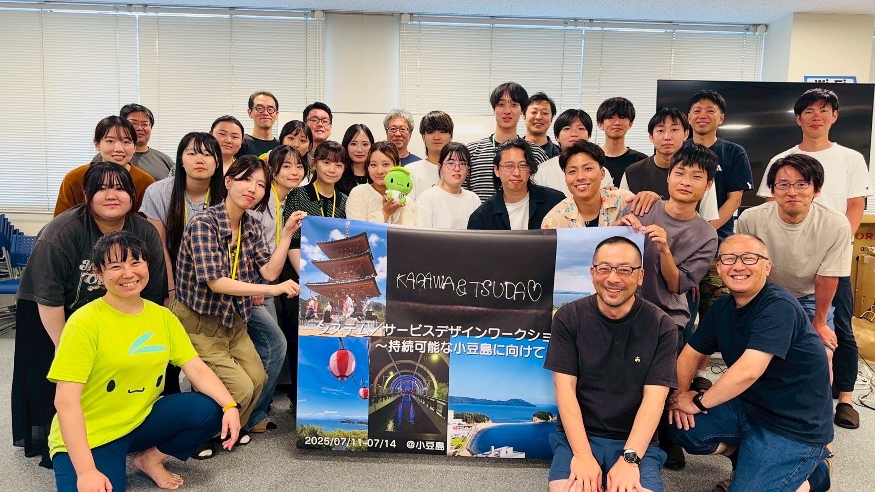 「持続可能な小豆島」を実現するためのシステムやサービスをデザインする、ワークショップ型の短期プログラムを実施しました。このプログラムは、大学3〜4年生や大学院生で専門領域を学ぶ学生を対象に企画され、香川大学の情報システム専攻の学生12名と、津田塾大学の総合政策専攻の学生7名、計19名が参加しました。 参加者は、アイデアの創出にとどまらず、実際にアイデアを形にする試作品(プロトタイプ)の開発にも挑戦。小豆島が抱える課題解決を目指し、2025年7月11日(金)から7月14日(月)までの3泊4日の日程で、集中的な学びと実践を行いました。